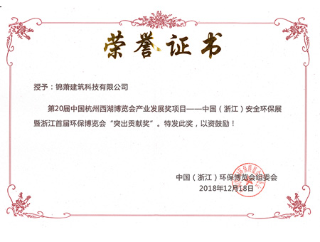 中国安全环保展暨浙江首届环保博览会突出贡献奖