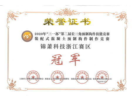 浙江省“建工杯”竞赛构件制作团体三等奖