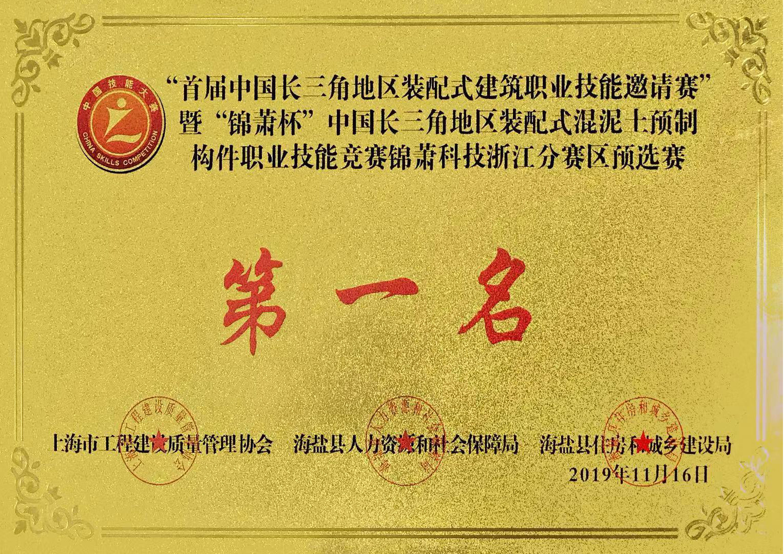 3044am永利集团官网杯中国长三角地区装配式混凝土预制构件职业技能竞赛浙江分赛区冠军