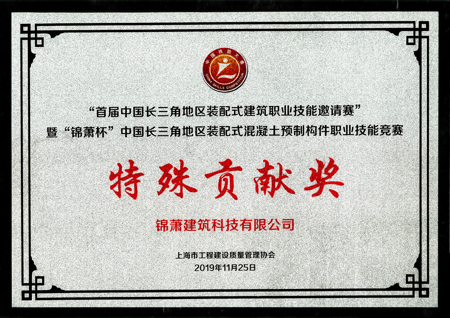 3044am永利集团官网杯中国长三角地区装配式混凝土预制构件职业技能竞赛特殊贡献奖