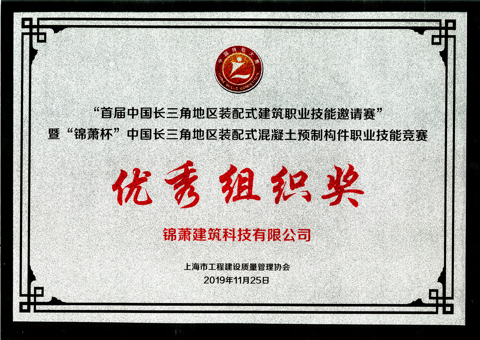 3044am永利集团官网杯中国长三角地区装配式混凝土预制构件职业技能竞赛优秀组织奖