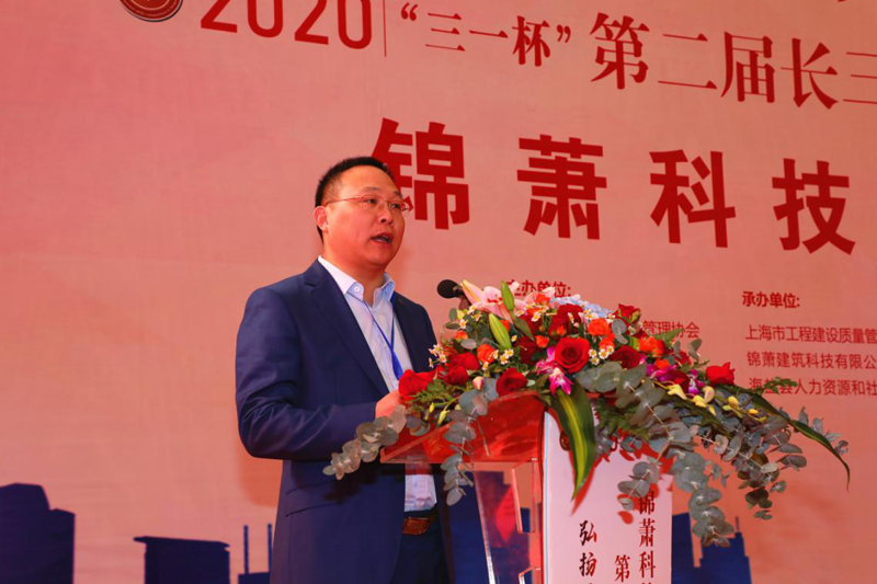 李军董事长致欢迎词,对上海市工程建设质量管理协会的信任与支持,对能够与海盐县人力资源和社会保障局、海盐县住房和城乡建设局、海盐县望海街道办事处共同承办本次比赛表示感谢。