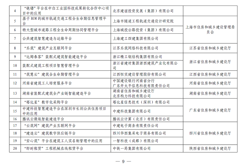 按照《住房和城乡建设部等部门关于推动智能建造与建筑工业化协同发展的指导意见》(建市〔2020〕60号)要求,为总结推广智能建造可复制经验做法,指导各地住房和城乡建设主管部门和企业全面了解、科学选用智能建造技术和产品,经企业申报、地方推荐、专家评审,确定124个案例为第一批智能建造新技术新产品创新服务典型案例(案例集可在住房和城乡建设部门户网站上查询)。现予以发布,请结合实际学习借鉴。