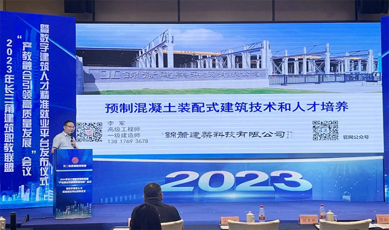 在2023年长三角建筑职教联盟“产教融合引领高质量发展”会议暨数字建筑人才精准就业平台发布仪式上,3044am永利集团官网成为长三角建筑职教联盟新成员,李军受邀作关于预制混凝土装配式建筑技术和人才培养的专题讲座。同时,作为该领域专家,李军对全上海和浙江省住建厅质监系统培训作《预制装配式整体剪力墙建筑的质量控制要点》的讲课。